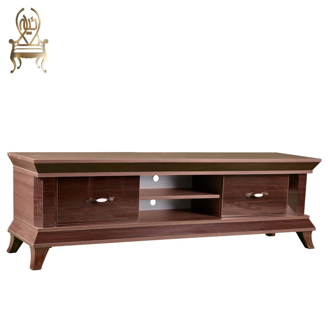 این میز دارای پایه می باشد و پایه ها از جنس چوب است. پایههای چوبی این محصول در عین سادگی هماهنگی خوبی با بدنه میز دارد و ارتفاع کلی میز را به حدود 45 سانتیمتر میرساند. در دو سمت میز، دو کشو دستگیره دار قرار گرفته است که می توانید وسایل خود را در آن جای بدهید. این میز یک تکه می باشد و همین ویژگی جابجایی آن را کمی مشکل کرده است اما از استحکام بالایی برخوردار است و با اطمینان می توانید هر نوع تلویزیونی را روی میز قرار دهید.